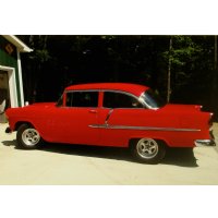 Karen's Beautiful Red 1955 2 Door Chevy that we rebuilt the shifter for.